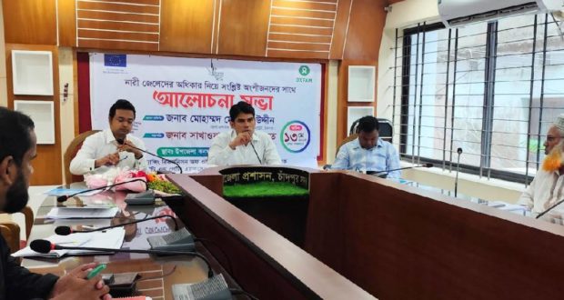 সেন্টার ফর ন্যাশনাল রিচার্জ স্টাডিজ (সি.এন.আর.এস) এর আয়োজনে চাঁদপুরে নারী জেলেদের অধিকার নিয়ে সংশ্লিষ্ট অংশীজনদের সাথে আলোচনা সভা অনুষ্ঠিত হয়েছে। মঙ্গলবার (১৩ মে) বেলা ১১টায় চাঁদপুর সদর উপজেলার নির্বাহী কর্মকর্তার সম্মেলন কক্ষে এ সভা অনুষ্ঠিত হয়।