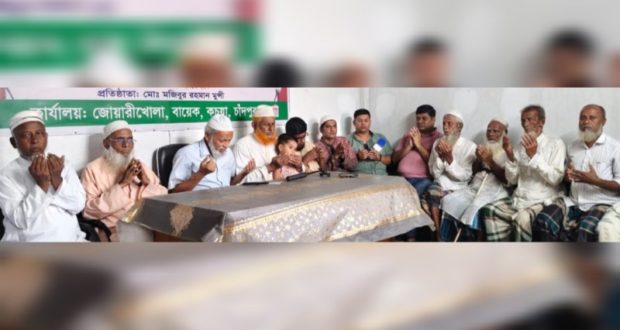 চাঁদপুরের কচুয়া উপজেলার জোয়ারীখোলা আদর্শ সমাজসেবা ফাউন্ডেশনের ৭ম তম বর্ষপূর্তি পালিত হয়েছে। এ উপলক্ষে শুক্রবার বিকেলে সংগঠনের কার্যালয় দোয়া ও মিলাদ মাহফিলের আয়োজন করা হয়।