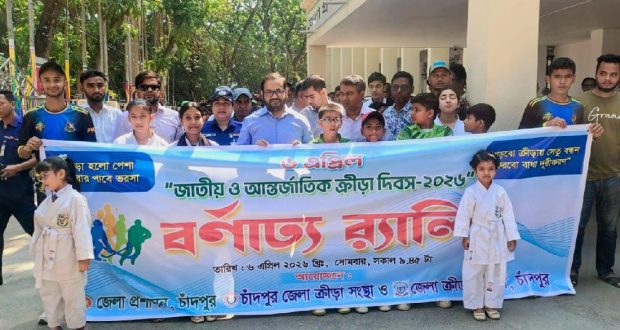 চাঁদপুরে জাতীয় ও আন্তর্জাতিক ক্রীড়া দিবস-২০২৬ উপলক্ষে র্যালি ও আলোচনা সভা অনুষ্ঠিত হয়েছে। সোমবার (৬ এপ্রিল) সকালে জেলা প্রশাসকের সম্মেলন কক্ষে এ অনুষ্ঠানের আয়োজন করা হয়। দিবসটির আয়োজনে ছিল জেলা প্রশাসন চাঁদপুর, চাঁদপুর জেলা ক্রীড়া সংস্থা ও জেলা ক্রীড়া অফিস।