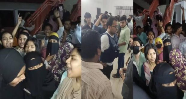 একপর্যায়ে আন্দোলনরত শিক্ষার্থীরা অধ্যক্ষসহ কয়েকজন শিক্ষককে কলেজে অবরুদ্ধ করে রাখেন মুহুরবহ স্লোগানে অধ্যক্ষের পদত্যাগ দাবি করেন। পরিস্থিতি ক্রমেই উত্তপ্ত হয়ে উঠলে খবর পেয়ে পুলিশ প্রশাসন ঘটনাস্থলে পৌঁছে পরিস্থিতি নিয়ন্ত্রণে আনার চেষ্টা চালায়।