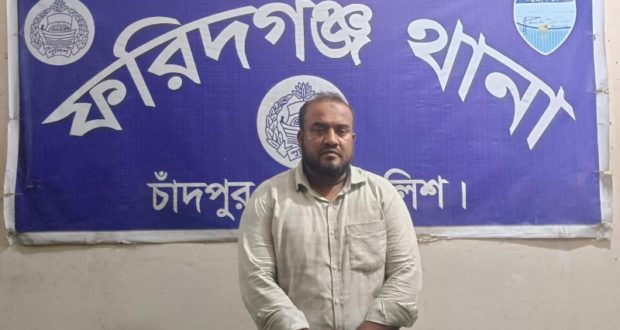 বৃহস্পতিবার (৩ জুলাই) রাতে ফরিদগঞ্জ থানার ভারপ্রাপ্ত কর্মকর্তা (ওসি) মো. শাহ্ আলমের নির্দেশে এসআই আরিফুর রহমান সরকার ও এএসআই জুমায়েত হোসেন অভিযান চালিয়ে তাঁকে নিজ বাড়ি থেকে গ্রেপ্তার করেন।