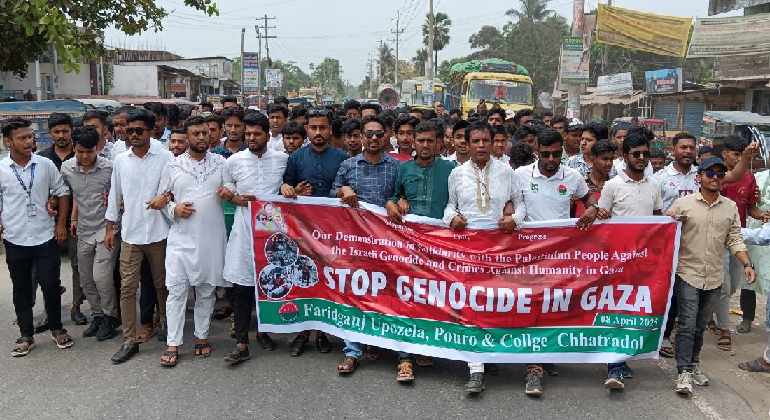 ফিলিস্তিনে গণহত্যার প্রতিবাদে ফরিদগঞ্জে ছাত্রদলের বিক্ষোভ সমাবেশ ও মিছিল