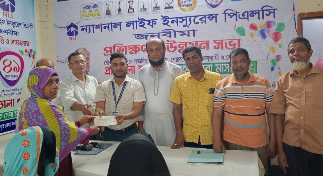 ন্যাশনাল লাইফ ইন্সুরেন্স পিএলসি প্রতিষ্ঠা বার্ষিকী এবং গ্রাহক সেবা মাস উপলক্ষে প্রশিক্ষণ উন্নয়ন সভা অনুষ্ঠিত হয়। উক্ত সভায় বীমার মেয়াদ পূর্তি ১১ জন গ্রাহককে ৮ লাখ ৯৫ হাজার টাকার ( পৃথক পৃথক) চেক বিতরণ করা হয়।