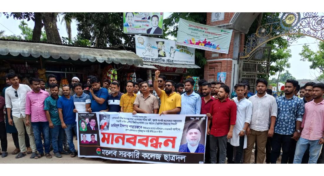 মতলব সরকারি কলেজ ছাত্রদলের আয়োজনে মানববন্ধন