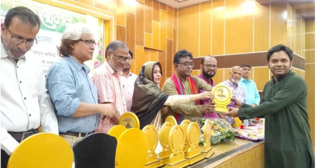 শনিবার (১১ এপ্রিল ২০২৬) লক্ষ্মীপুর উপজেলা পরিষদ মিলনায়তনে সংগঠনের ২৭তম প্রতিষ্ঠাবার্ষিকী ও সাহিত্য সম্মেলন–২০২৬ উপলক্ষে আয়োজিত অনুষ্ঠানে অনুবাদ সাহিত্যে অবদানের জন্য তার হাতে পুরস্কার তুলে দেন অতিথিবৃন্দ।