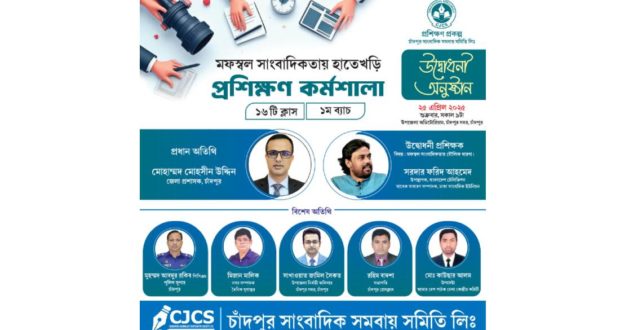 চাঁদপুর সাংবাদিক সমবায় সমিতি লিমিটেডের আয়োজেন এই প্রথম মফস্বল সাংবাদিকতায় হাতেখড়ি প্রশিক্ষণ কর্মশালা শুরু হতে যাচ্ছে। আর এই প্রশিক্ষণে সাংবাদিকতা পেশায় আগ্রহী নবীনদের অগ্রাধিকার দেয়া হয়েছে।