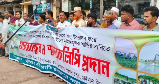 প্রধান অতিথির বক্তব্যে শফিক পাটওয়ারী বলেন, “হাইমচর আমাদের অস্তিত্ব। এই জনপদ ধ্বংস করে কাউকে পকেট ভারী করতে দেওয়া হবে না। অবিলম্বে অবৈধ বালু উত্তোলন বন্ধ না হলে আমরা আরও কঠোর আন্দোলনে যেতে বাধ্য হব।”